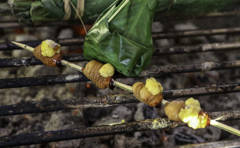 El chontacuro es uno de los platos más conocidos de Ecuador. Para servirse como alimento, lo preparan traspasando una varilla de madera y lo asan hasta que este dorado. Su sabor es parecido al cuero del chancho o tocino. Este plato es acompañado con yuca, plátano fritos y agua de guayusa.